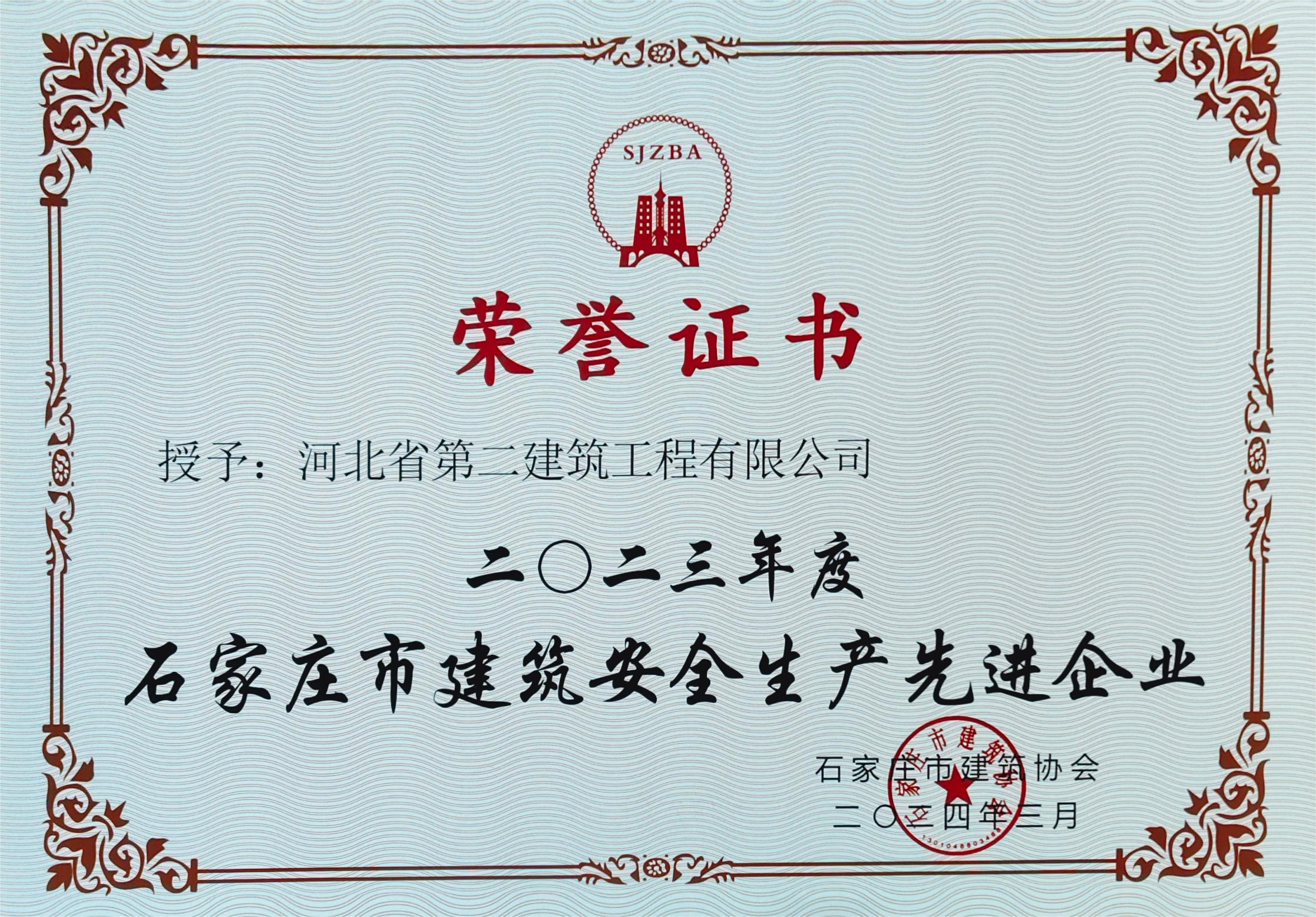河北二建:公司获“河北省安全生产管理先进企业”荣誉称号