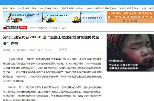 随后,中华人民共和国住房城乡建设部主管的《建筑》杂志社及中国新闻通讯社、中国网、中国建设传媒网、央广网、新丝路资讯网、人民铁道网、中华铁道网、中国创新新闻网、中国路面机械网、扬州热线、中国起重机世界网、天之水网、娱乐网、今企网、河北省国资委、河北建工集团、重庆重商、中铁七局官网等20余家媒体对公司获奖进行报道,总浏览数超10000人次。