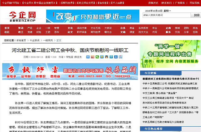 随后,人名日报社主管的人民日报海外网、人民铁道网、中华铁道网、中国建设传媒网、新丝路资讯网、今企网、聚焦中国网等10余家媒体对公司领导双节期间慰问一线职工进行报道。