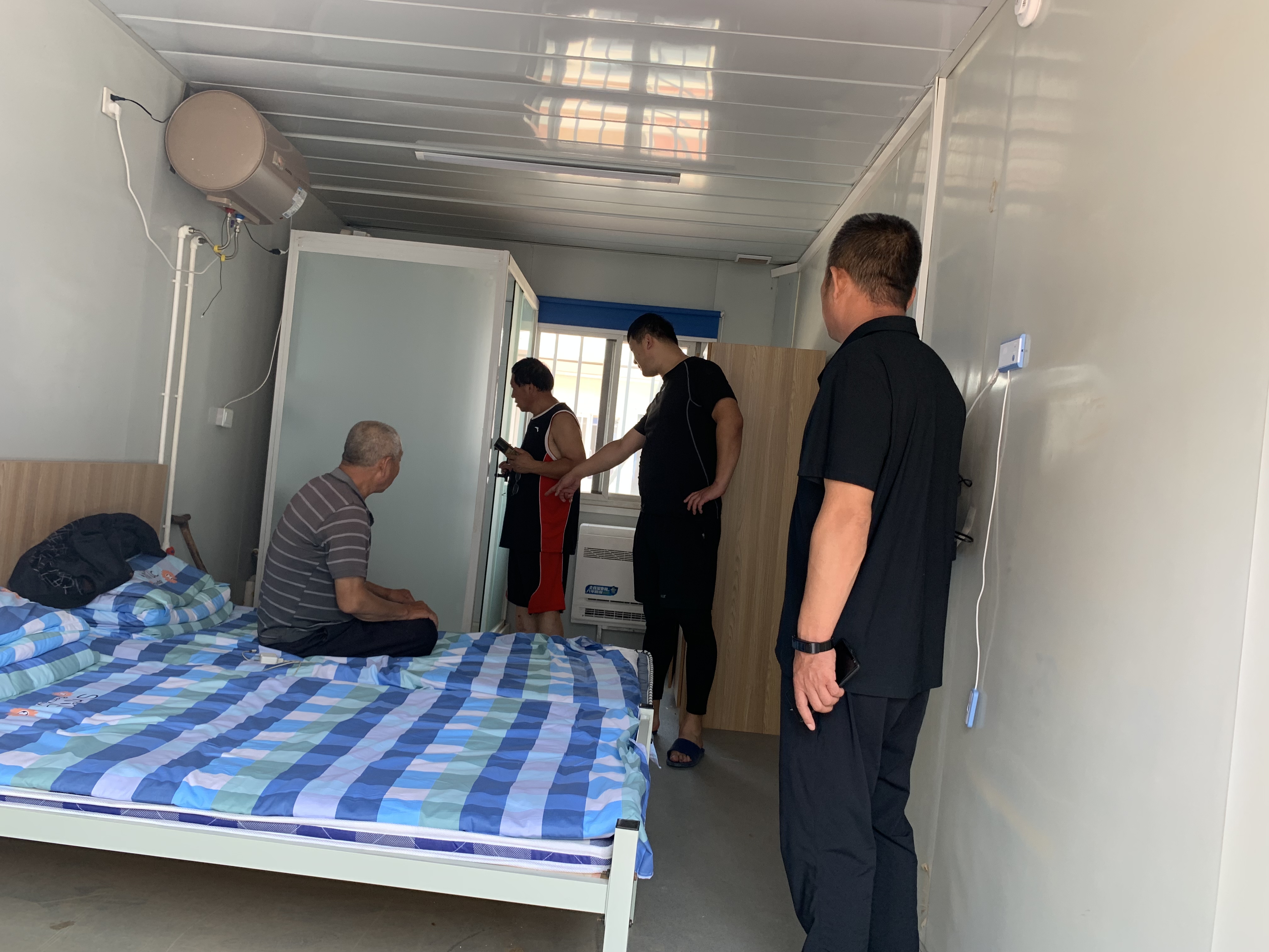 8月2日凌晨,公司驻板铺村工作队协同镇、村干部第一时间安全转移撤离全村104人至宣化区侯家庙镇安置点。安置点房间均配有独立卫生间、简易家具、电视、空调等设施以及医疗、消杀、防暑等物资。