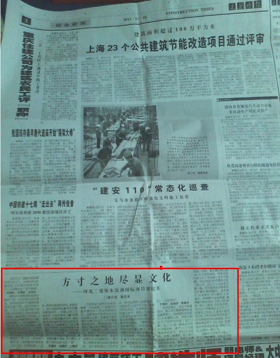 《建筑时报》报道我公司项目文化建设情况 来源: 修改时间:2013.11.25 浏览:6927 《建筑时报》报道我公司项目文化建设 2013年11月18日,《建筑时报》第2版以《方寸之地尽显文化》为题,报道我公司项目文化建设、职工小家建设事迹。 上一条 返回列表 下一条